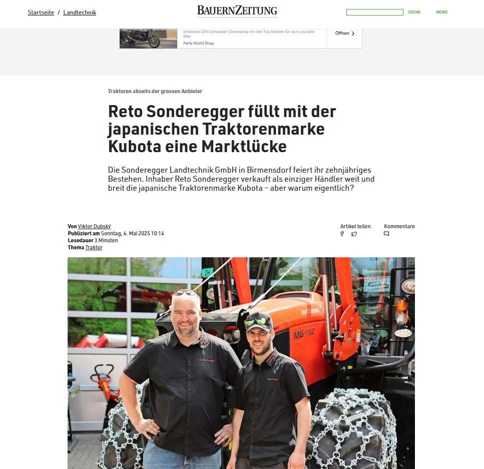Ab 01.04.2020 haben wir die offizielle Kubota-Traktorenvertretung.