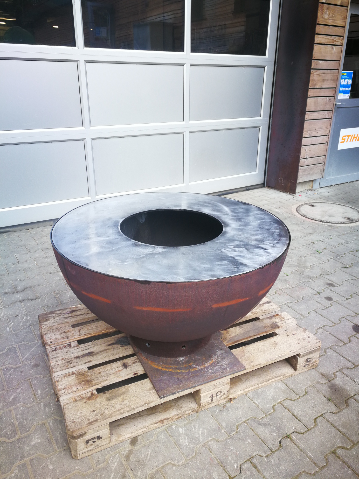 Grillstelle nach Kundenwunsch aus altem Wasserboiler hergestellt.