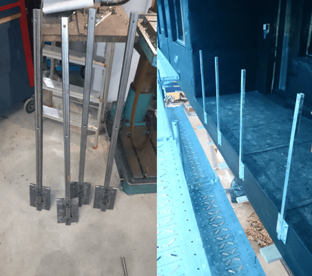Metall-Unterkonstruktion verzinkt, für Balkongeländer aus Holz.